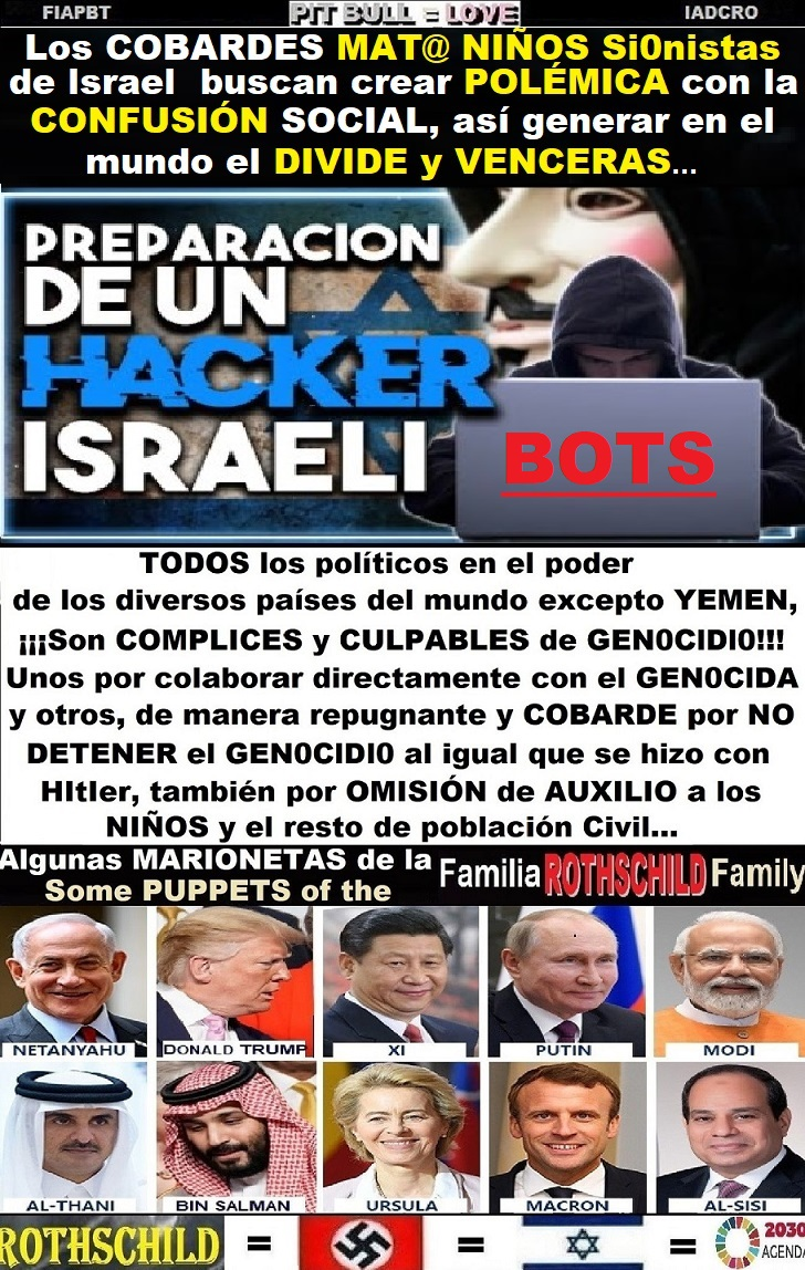 CONTROL DE TODOS LOS PAÍSES Y SUS CIUDADANOS DEL PLANETA antes del año 2030, no solo de Palestina, no. Los SIONISTAS Falsos Judíos